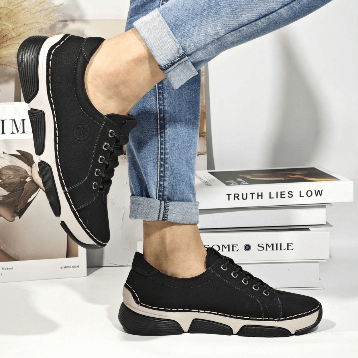 Тези дамски обувки „Ема“ в черен цвят съчетават модерна визия с класически елементи, което ги прави идеален избор за всяка ситуация. С тяхната елегантна форма и стилни детайли, тези стилни обувки предлагат не само комфорт, но и уникален стил. Независимо дали ги носите за ежедневни разходки или за по-официални поводи, тези елегантни дамски обукви ще допълнят всяка ваша визия. Изработени от висококачествени материали, тези качествени обувки осигуряват дълготрайност и удобство през целия ден. Налични в размери от 36 до 41, те са подходящи за всяка крака.
